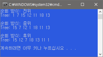 이진 트리는 크게 3가지 방법으로 순회합니다.