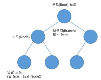 맨 아래의, 더 이상의 연결된 요소가 없는 노드를 단말 노드, 혹은 잎 노드(Leaf Node)라고 하며 잎 노드의 상단 노드를 부모 노드(Parent Node)라고 합니다.