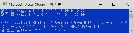 printArr(arr, length, "정렬 후 배열");