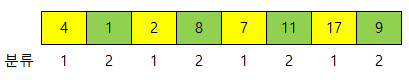 // 0: 분류 1의 첫 요소
