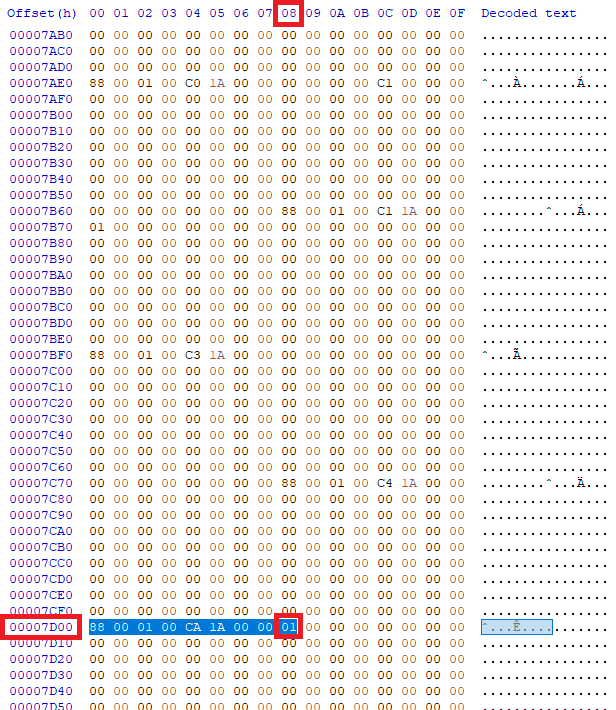 그렇기 때문에 "7D00"의 8번 항목을 찾으시면 됩니다.
