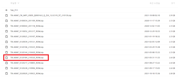 5월 20일자 롬파일을 다운로드하여 압축까지는 미리 풀어놓습니다.