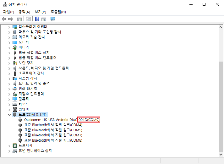 FFBM 모드로 진입 후 컴퓨터에 연결하면