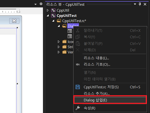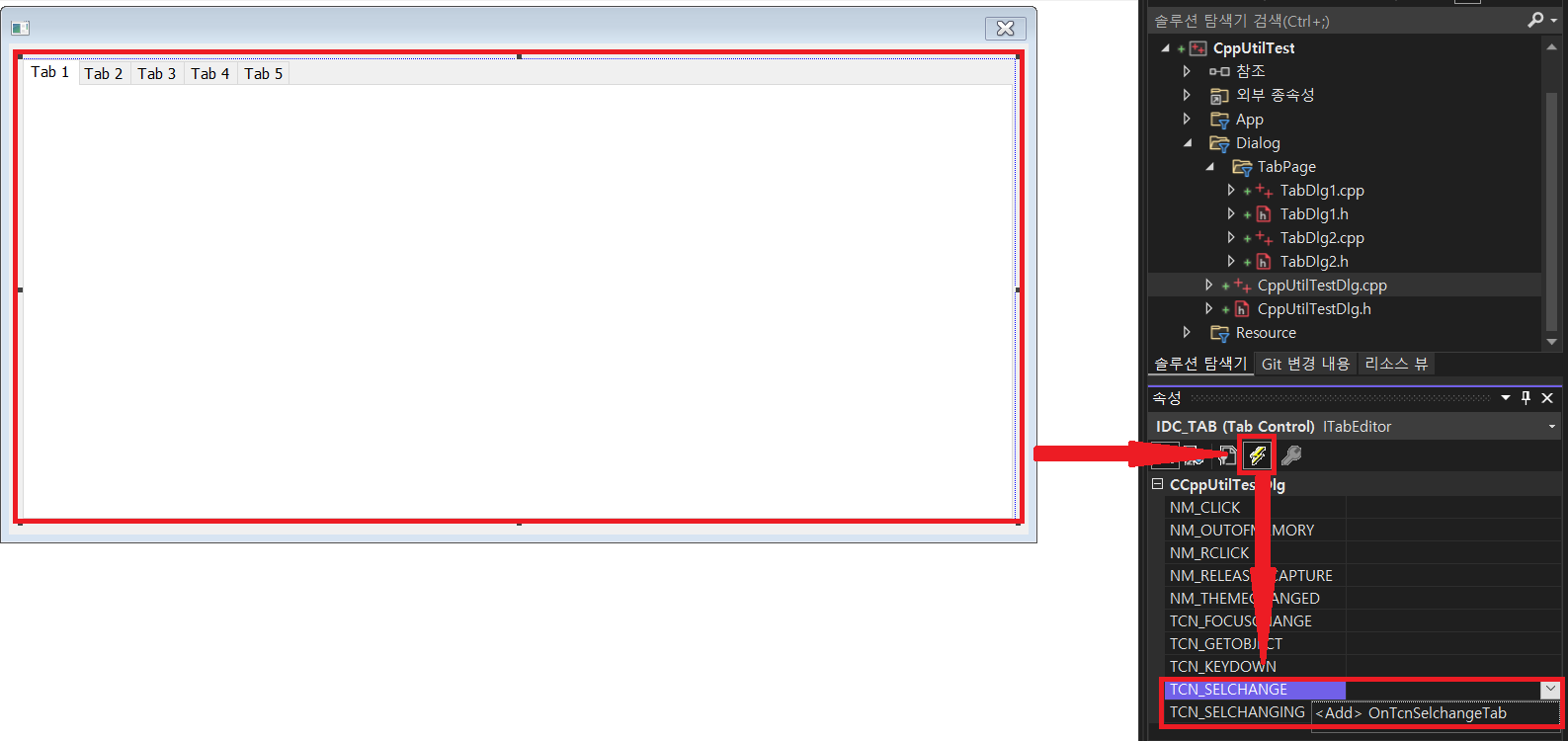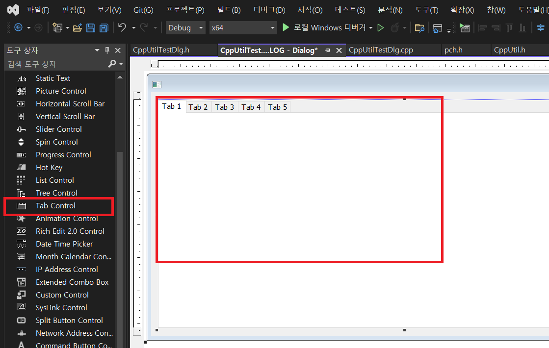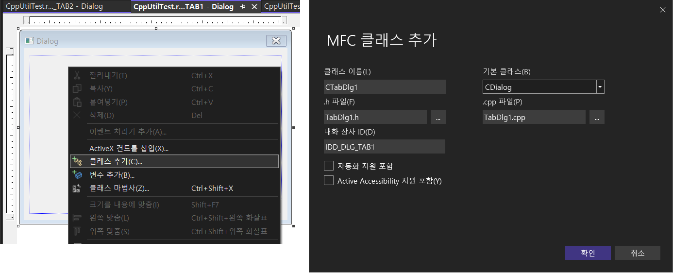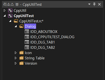 | IDD_CPPUTILTEST_DIALOG (메인) | CCppUtilTestDlg (탭 컨트롤의 ID는 IDC_TAB) |