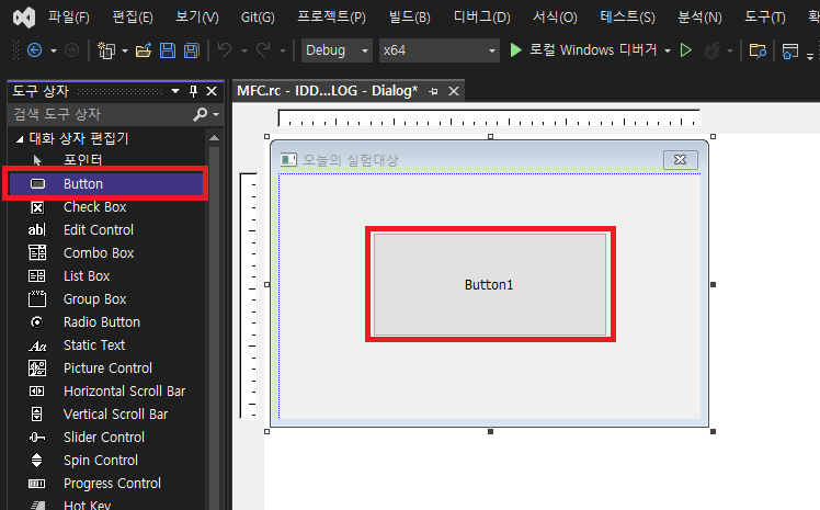 도구 상자에서 Button 컨트롤을 하나 만듭니다.