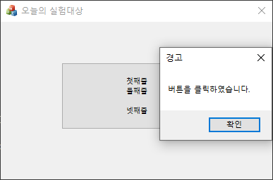 버튼을 클릭하면 메시지가 나오도록 해봅시다.