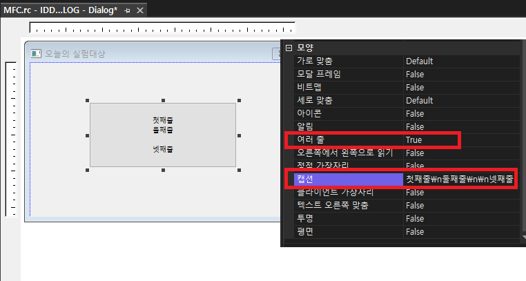 | 여러 줄 | Multiline | 개행 기호(\n)를 이용하여 여러줄의 캡션 사용 |