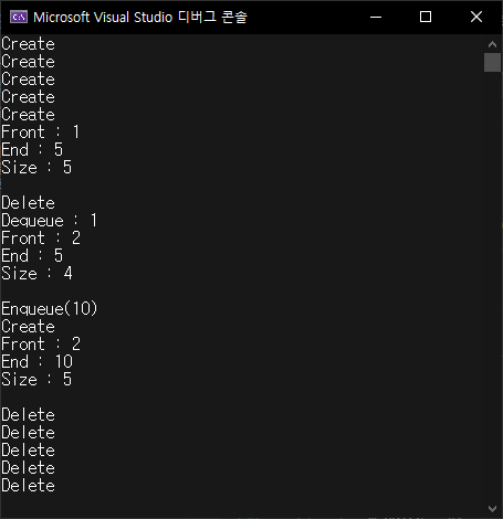 데이터의 삭제는 시작 지점(Start)에서, 삽입은 끝 지점(End)에서 이루어집니다.