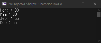 (간단하게 출력을 위해 List로 변환 후 ForEach를 사용하였습니다.)