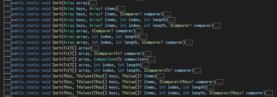 일단 Array.Sort는 상당히 많은 오버로드 함수를 가지고 있습니다.