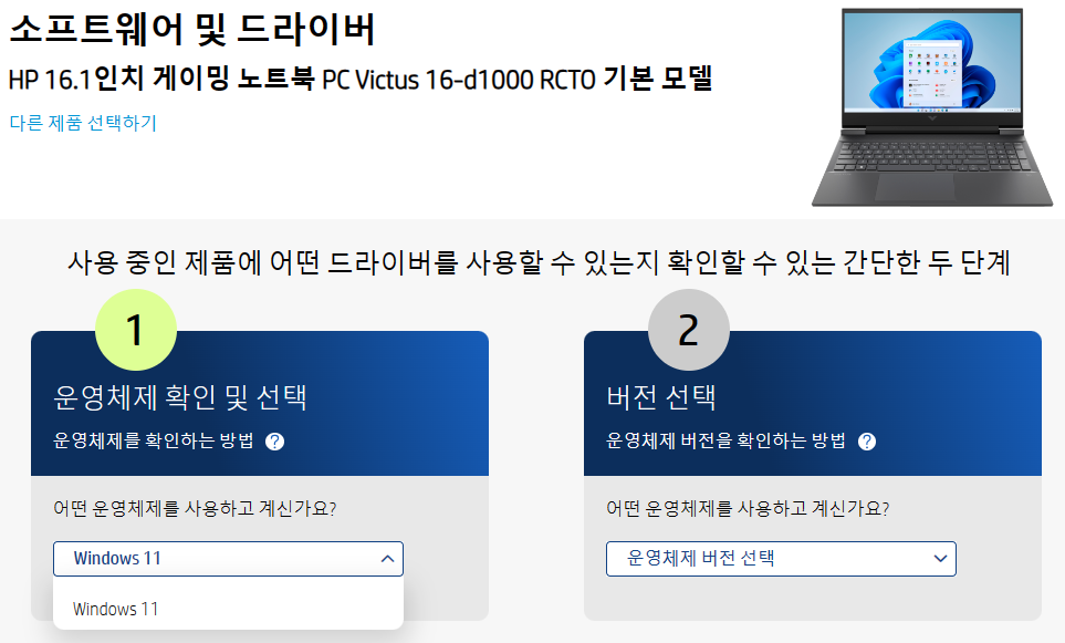 (저는 Victus 16-d1121TX모델이지만 HP 에서는 16-d 모델 전체를 하나로 보고 있기 때문입니다.)